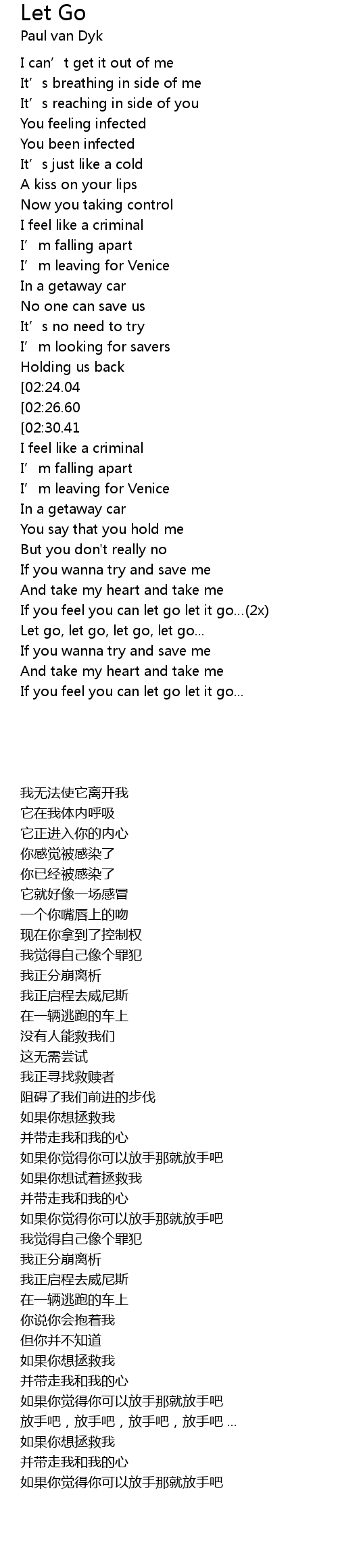 | [04:24.08] | If you feel you can let go let it go 2x |