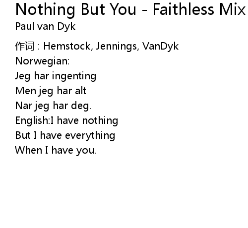 | Song | Nothing But You - Faithless Mix |