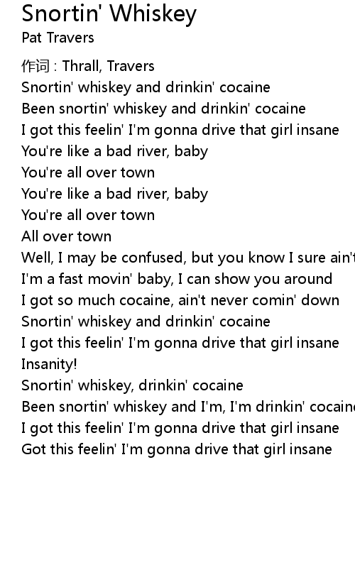 | Been snortin' whiskey and I'm, I'm drinkin' cocaine | |