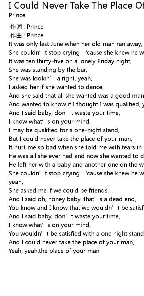 | Song | I Could Never Take The Place Of Your Man ( LP Version) |