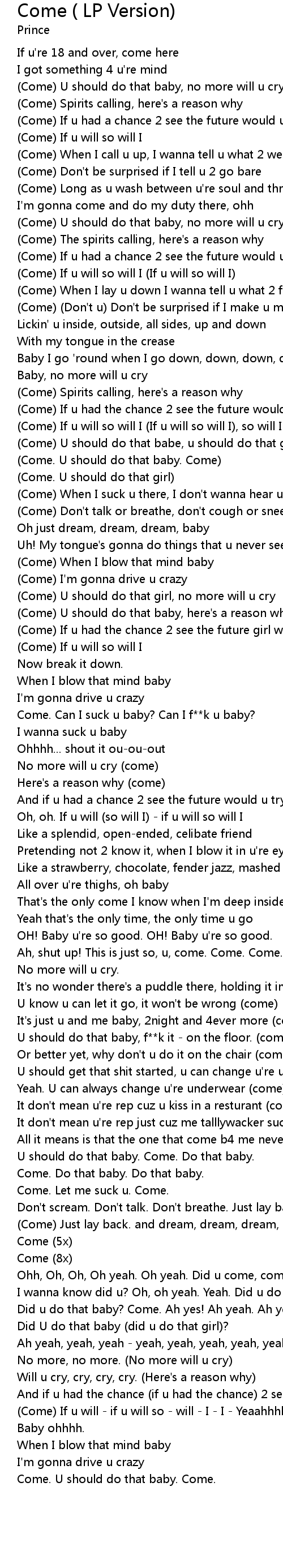 | Ohh, Oh, Oh, Oh yeah. Oh yeah. Did u come, come, come, come? | |