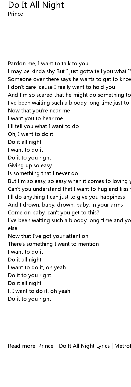 | Read more: Prince Do It All Night Lyrics MetroLyrics |