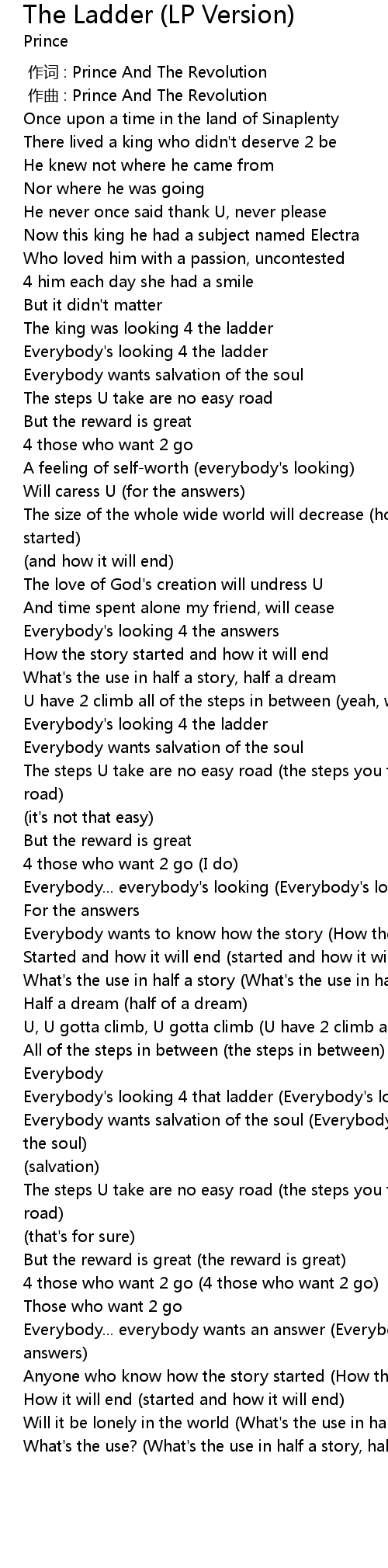 | [04:20.298] | Everybody's looking 4 that ladder (Everybody's looking 4 the ladder) |