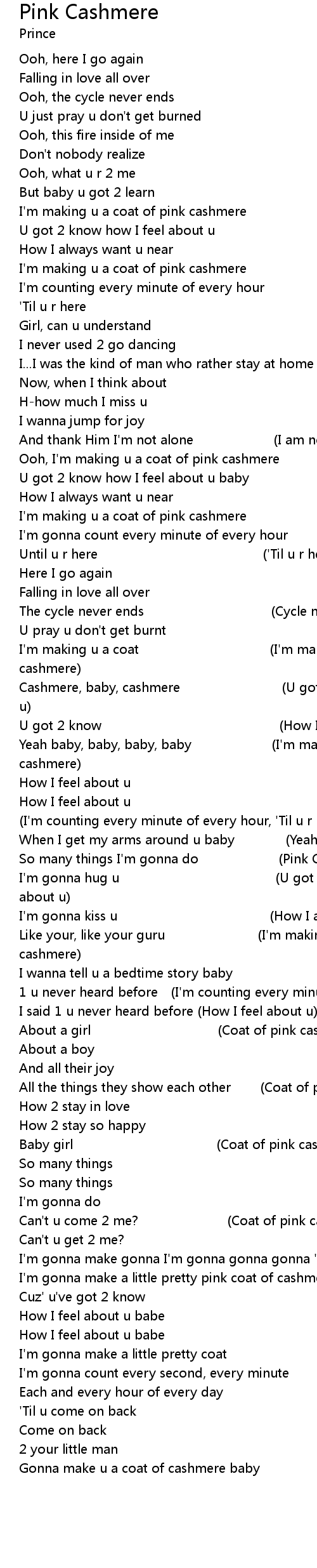 | Yeah baby, baby, baby, baby I' m making u a coat of pink cashmere | |