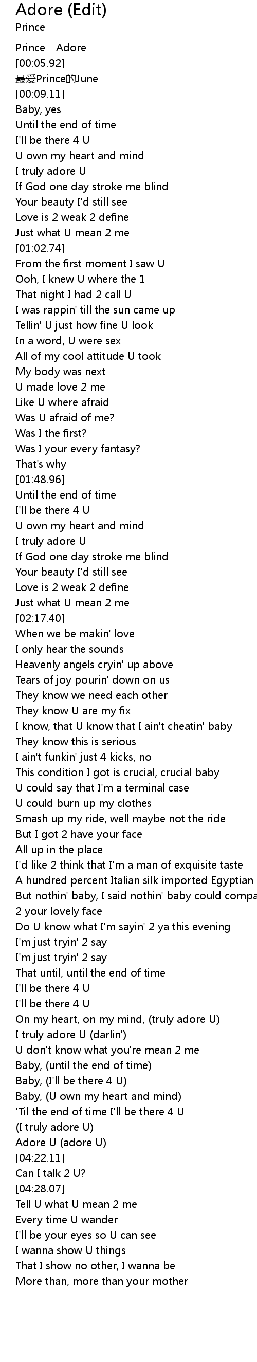 | [00:00.70] | Prince - Adore |