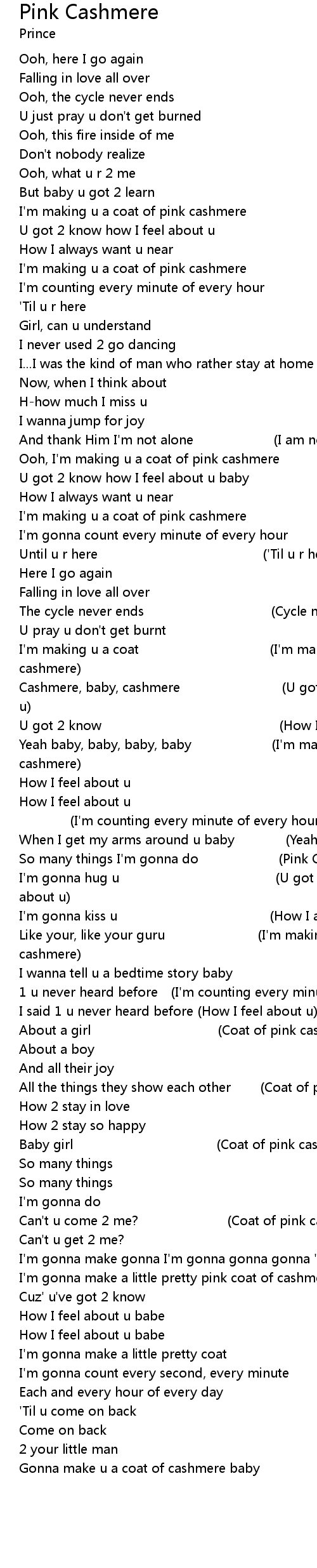 | Yeah baby, baby, baby, baby I' m making u a coat of pink cashmere | |