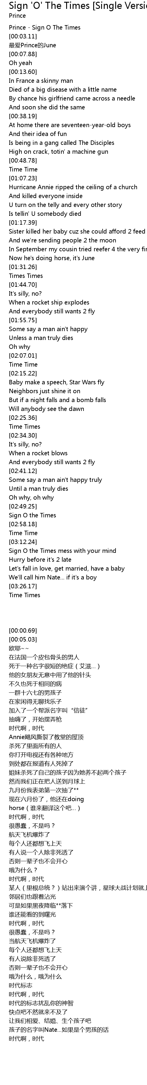 | [00:00.69] | Prince - Sign O The Times |