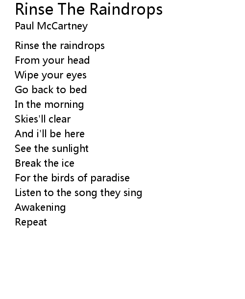 | Song | Rinse The Raindrops |