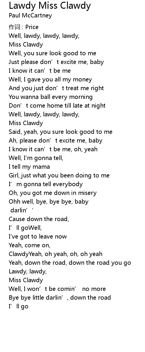 | Song | Lawdy Miss Clawdy |