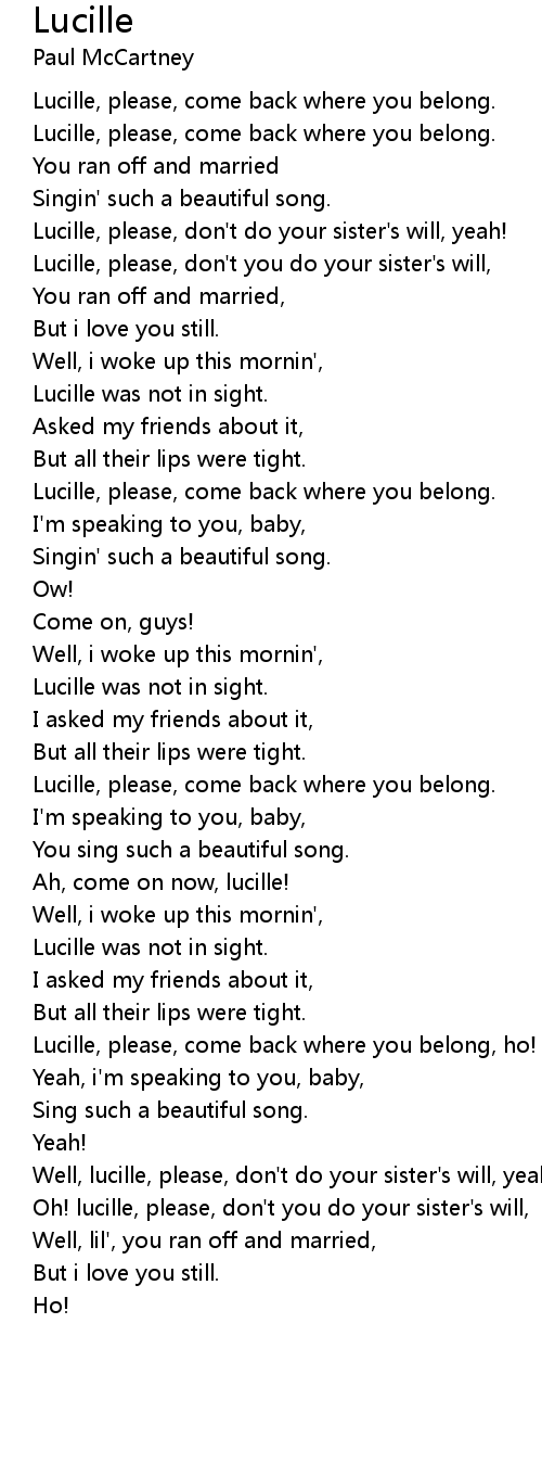 Lucille, please, come back where you belong, ho! |