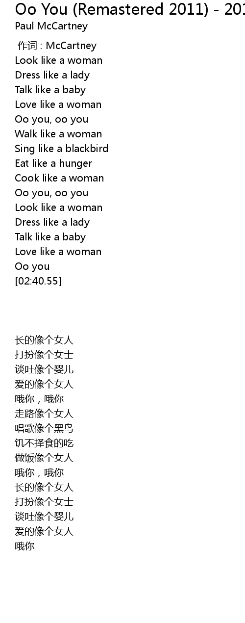 | [00:15.70] | Look like a woman |
