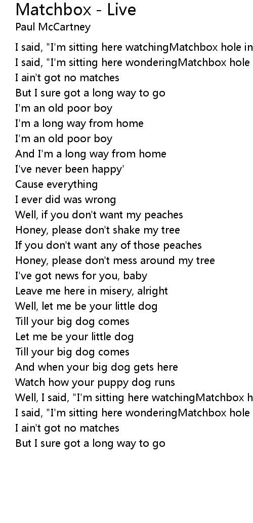 Well, I said, "I'm sitting here watchingMatchbox hole in my clothes"