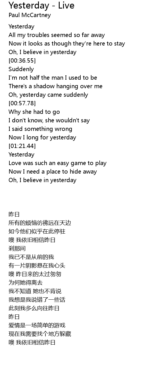 Oh, I believe in yesterday |
