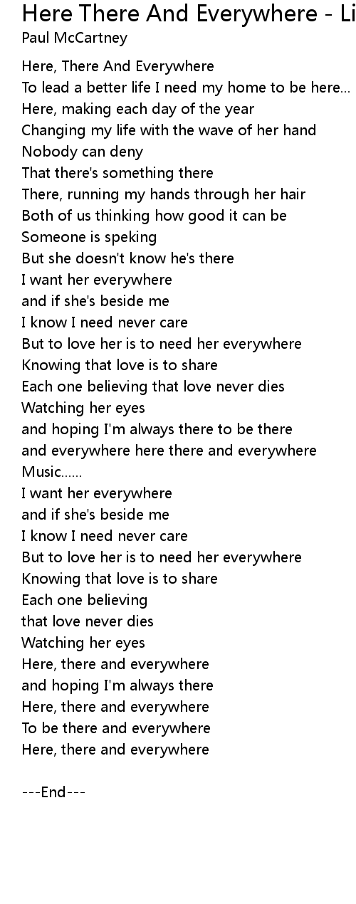 Here There And Everywhere - Live On MTV Unplugged Lyrics