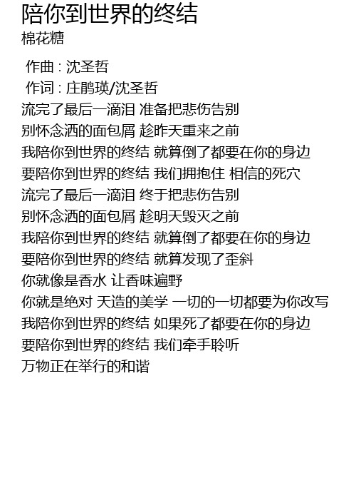 | [02:36.880] | 要陪你到世界的终结 我们牵手聆听 万物正在举行的和谐 |