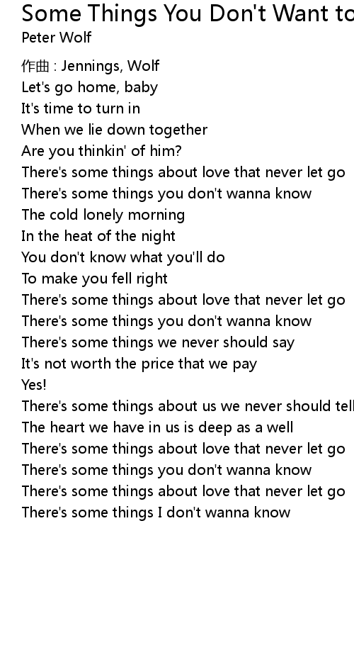 | There' s some things I don' t wanna know |