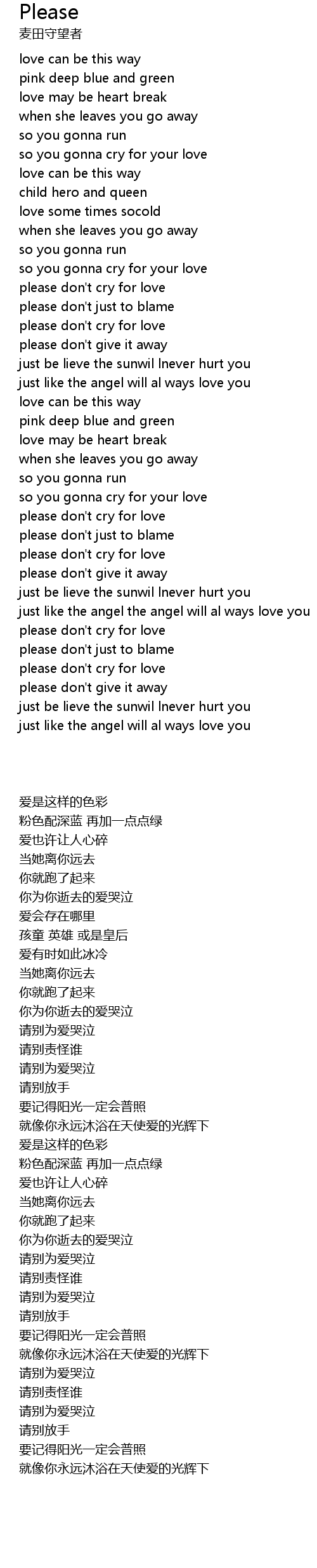 | [01:18.30] | please don't cry for love |