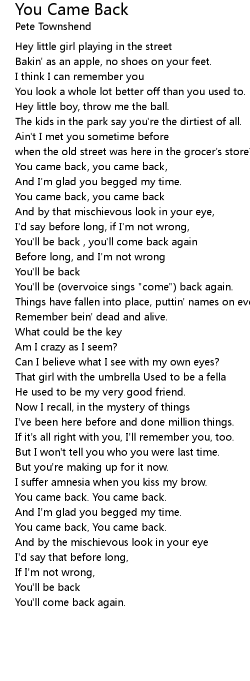 You came back, you came back, |