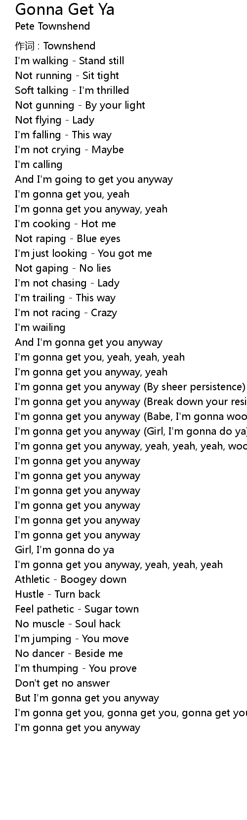 | I' m gonna get you, gonna get you, gonna get you, gonna get you | |