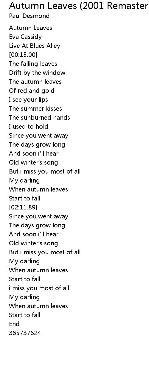 | Song | Autumn Leaves (2001 Remastered - Take 3) |