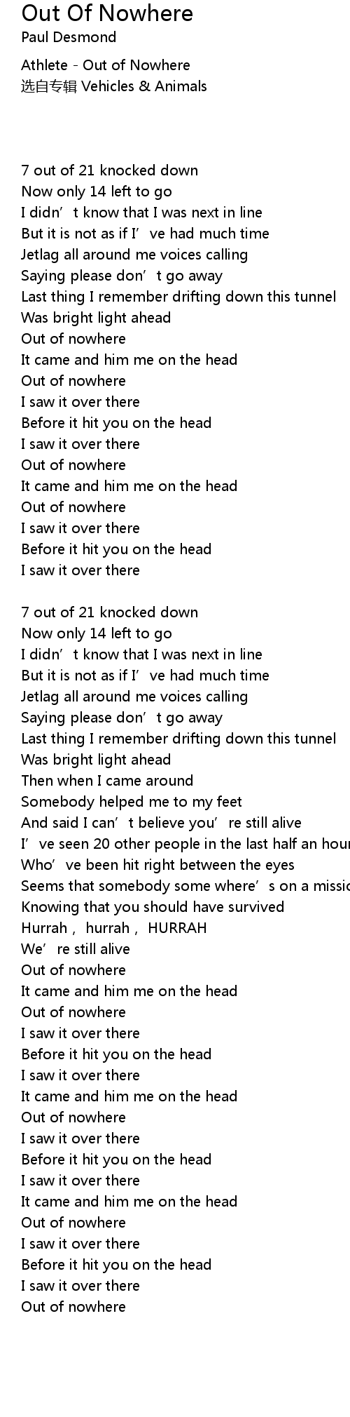 | Athlete - Out of Nowhere | |