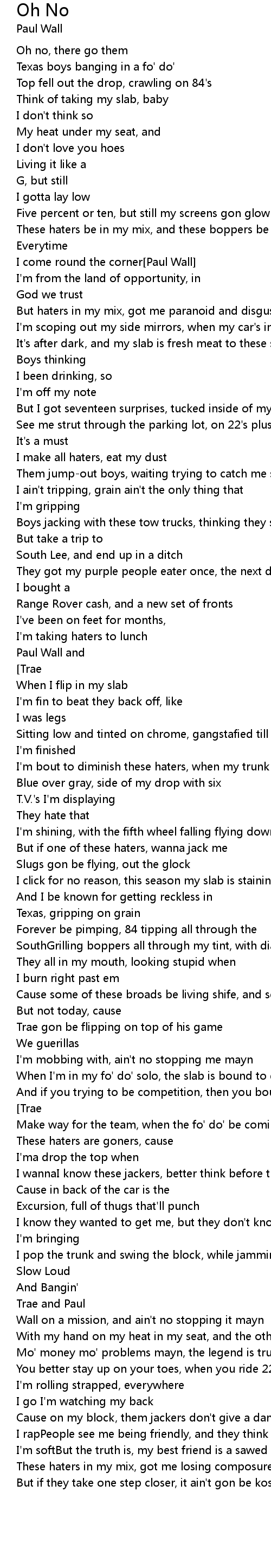 When I'm in my fo' do' solo, the slab is bound to get tossed |