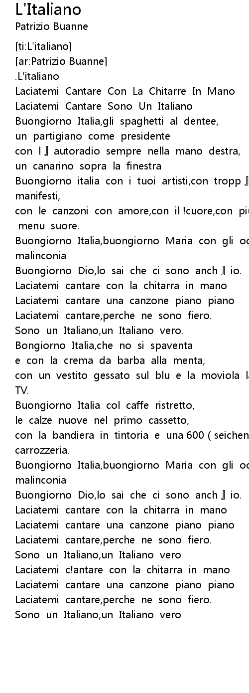 | [00:06.11] | Laciatemi Cantare Con La Chitarre In Mano |