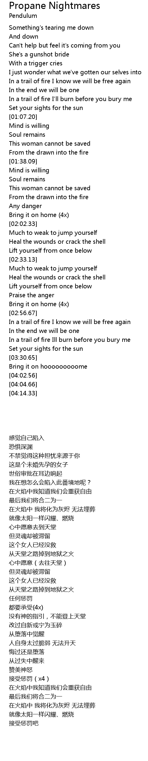 | [03:20.30] | In a trail of fire Ill burn before you bury me |