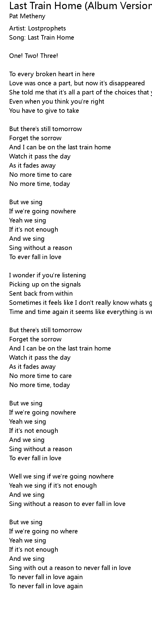 Song: Last Train Home |
