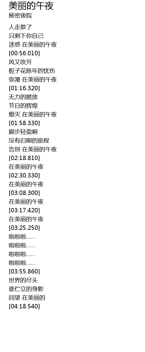 | [01:09.380] | 弥漫 在美丽的午夜 |