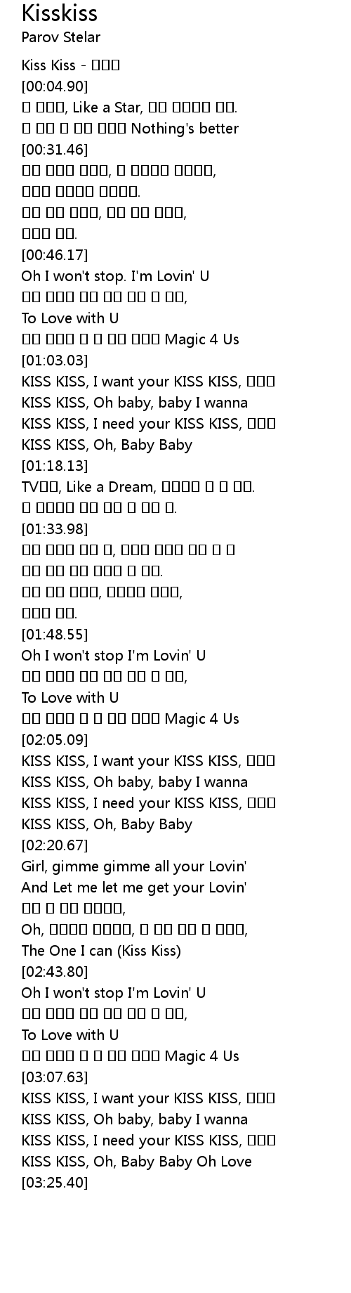 | [03:19.71] | KISS KISS, Oh, Baby Baby Oh Love |