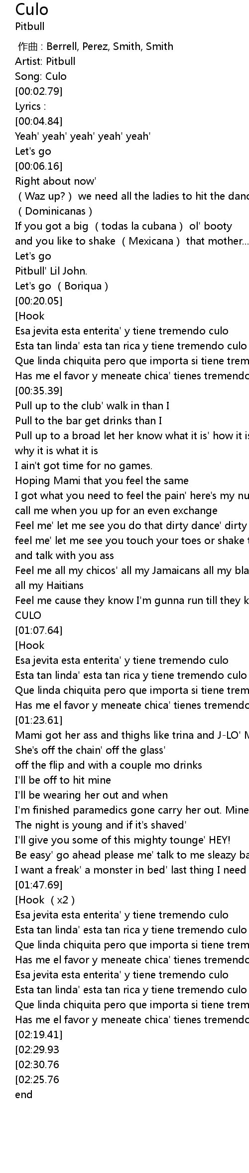 | [00:02.15] | Artist: Pitbull |