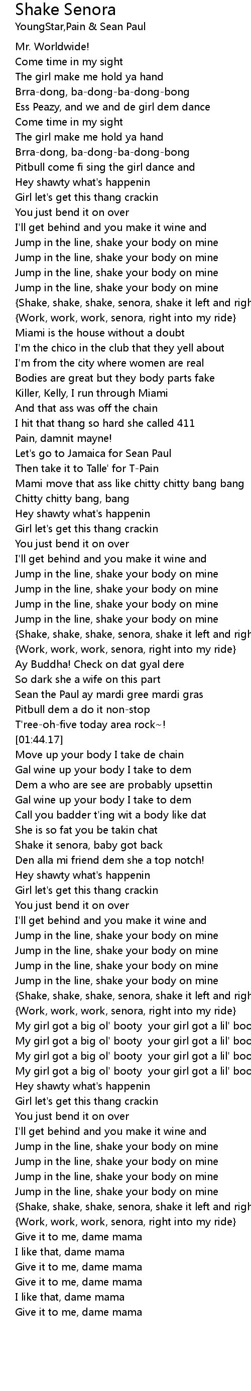 {Shake, shake, shake, senora, shake it left and right} |