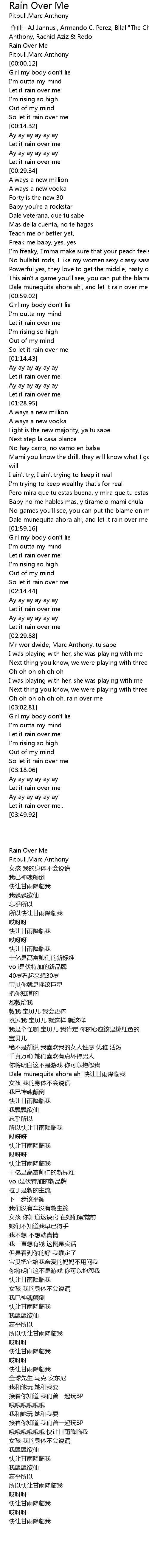 | [01:57.04] | Dale munequita ahora ahi, and let it rain over me |