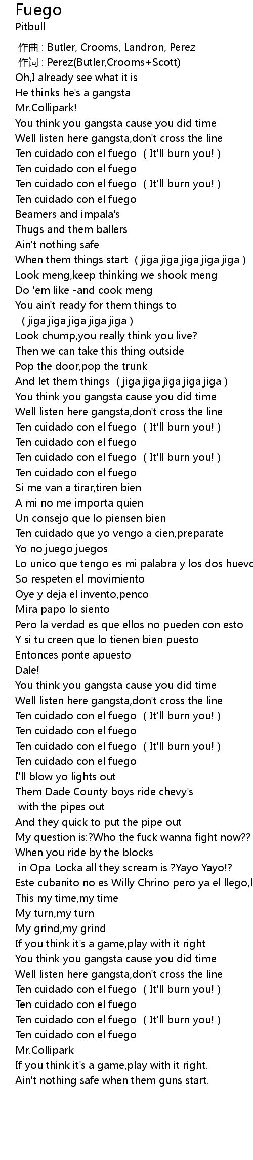 | [01:46.600] | Ten cuidado con el fuego (It'll burn you!) |