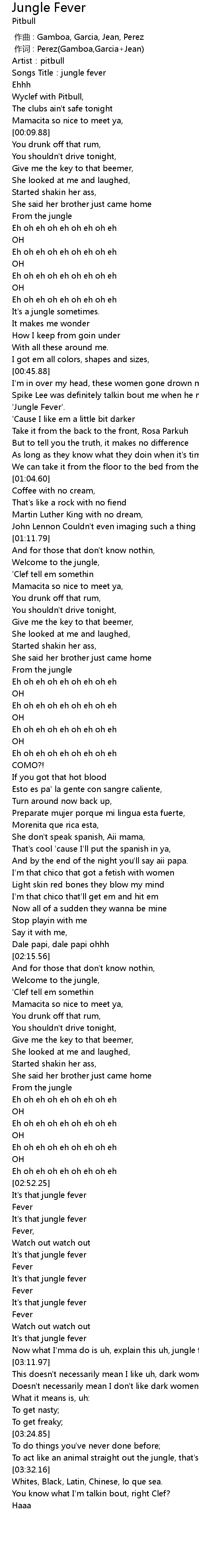 | [03:28.46] | To act like an animal straight out the jungle, that's jungle fever. |