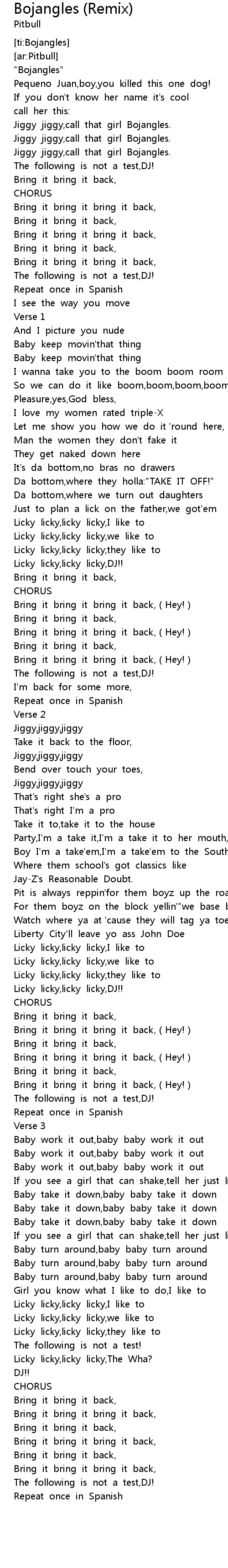 | [00:29.384] | Jiggy jiggy,call that girl Bojangles. |