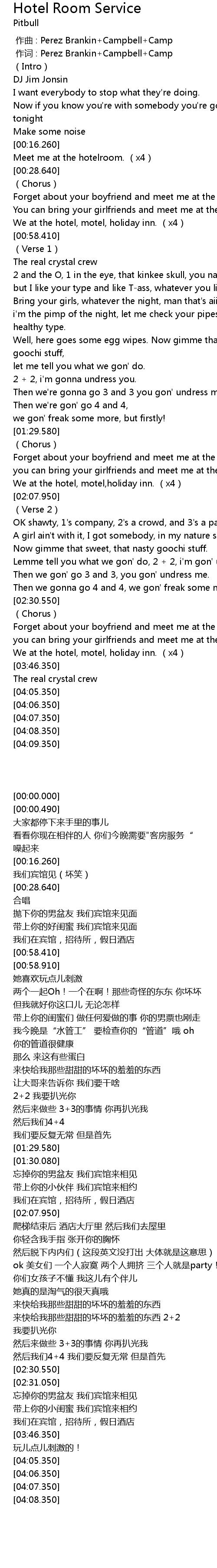 | [00:33.460] | You can bring your girlfriends and meet me at the hotelroom. x2 |