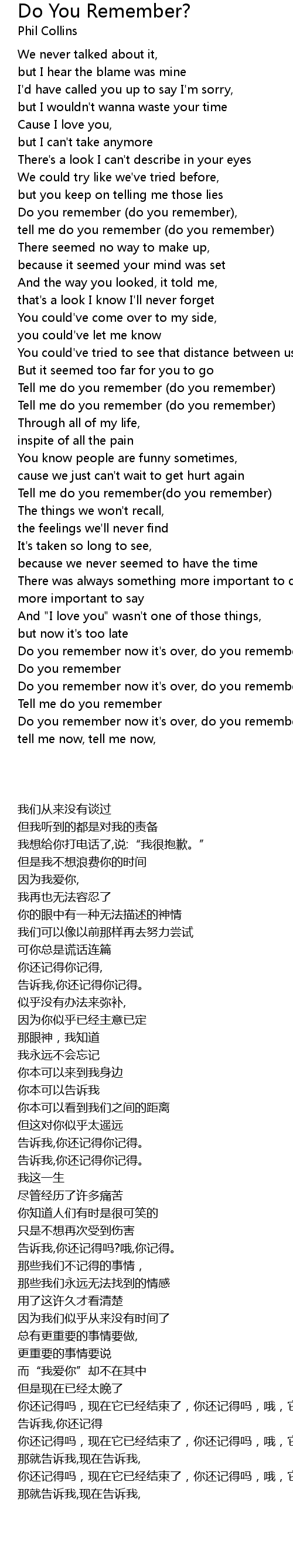 Tell me do you remember |
