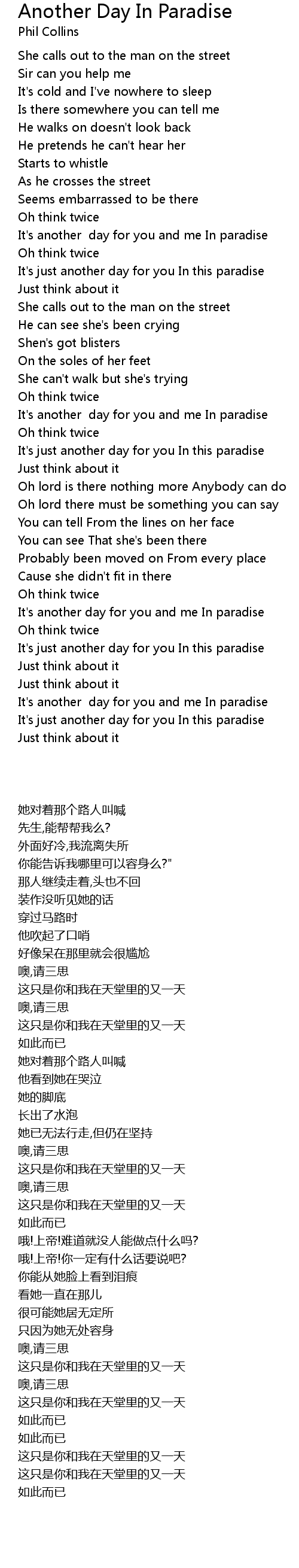 It's just another day for you In this paradise |