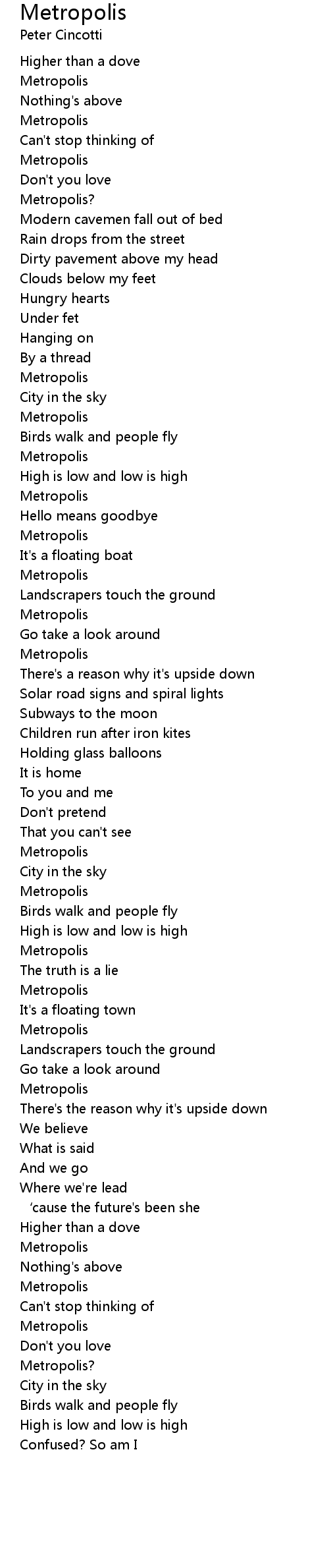 | Song | Metropolis |