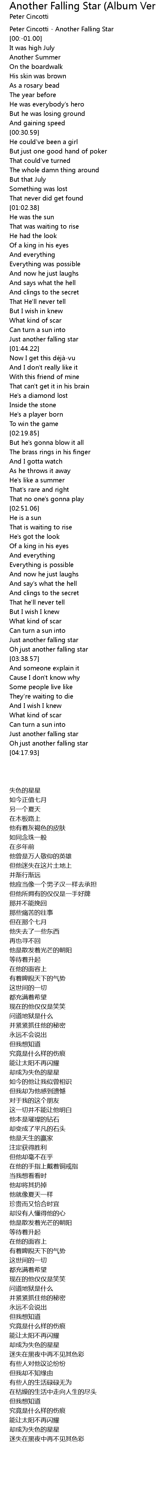 | [04:11.04] | Oh just another falling star |