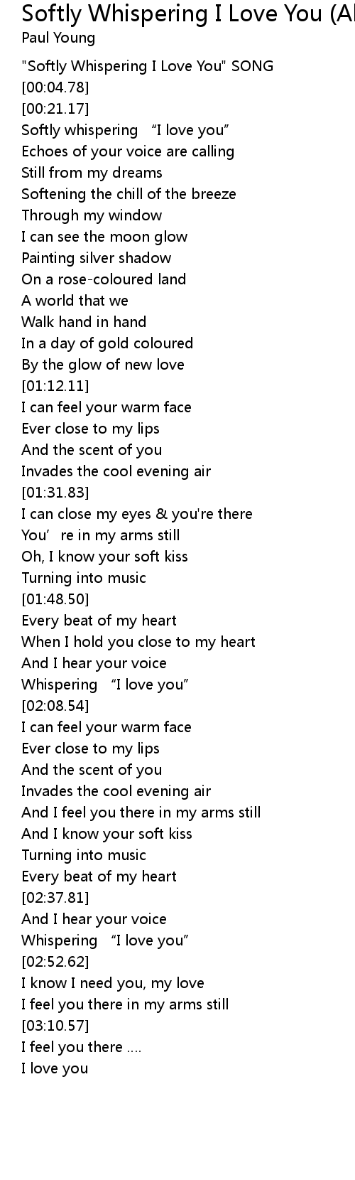 | [00:02.88] | " Softly Whispering I Love You" SONG |