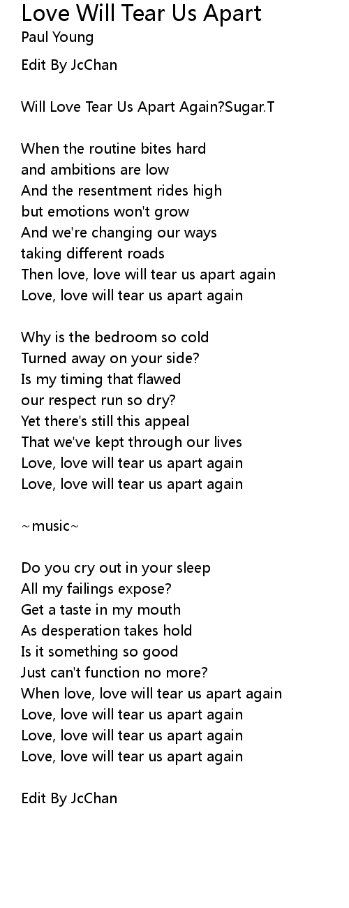 Love Will Tear Us Apart Lyrics