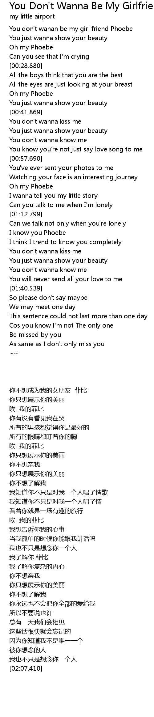 | [00:15.420] | You don't wanan be my girl friend Phoebe |