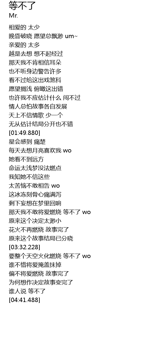 | [04:25.689] | 谁人说 等不了 |