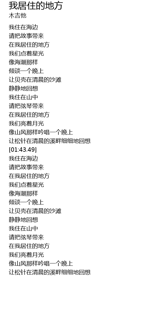 我居住的地方 wo ju zhu de di fang Lyrics