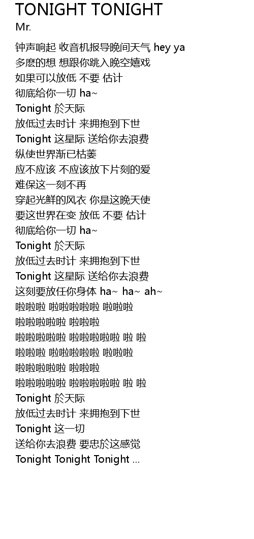 | [03:44.20] | Tonight Tonight Tonight ... |