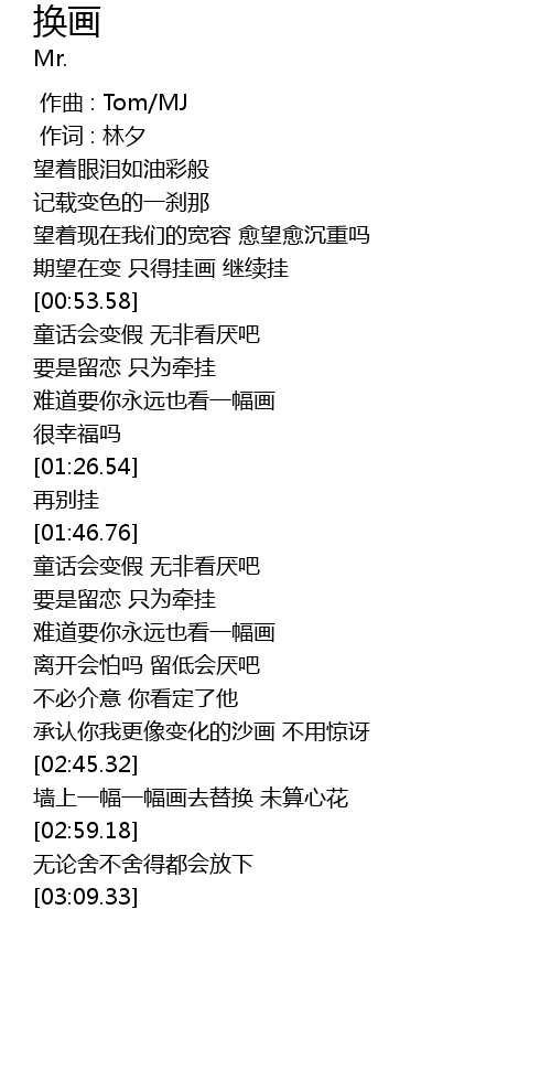 | [02:09.20] | 难道要你永远也看一幅画 |