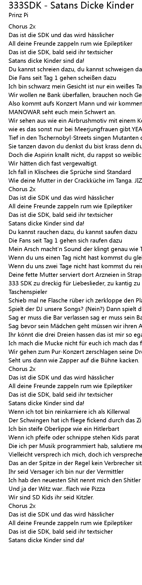 | 333 SDK zu dreckig fü r Liebeslieder, zu kantig zu eckig eher so Mucke fü r Taschenspieler | |